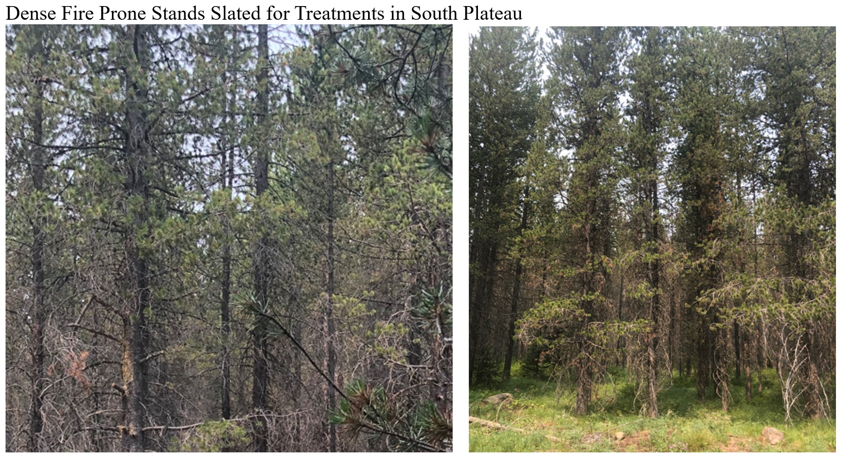 The South Plateau Project was developed to address real and growing risks on the landscape. The area is dominated by dense homogenous lodgepole pine stands that are highly vulnerable to insects, disease, and severe fire. About 90 percent of the project area falls within Fire Regime Group V, where stand replacing fires are likely. Eighty percent of the lodgepole pine stands in this area are rated as highly susceptible to mountain pine beetle outbreak. These are the same conditions that have fueled some of the most destructive wildfires in the region in recent years.